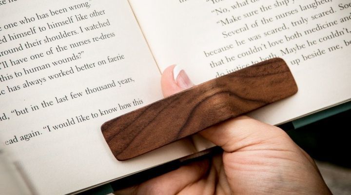 A wooden page holder that you can wear on your thumb and allows you to comfortably read a book with one hand. This handcrafted holder can be carried in your purse or pocket and comes in two size so it can fit comfortably on any thumb.