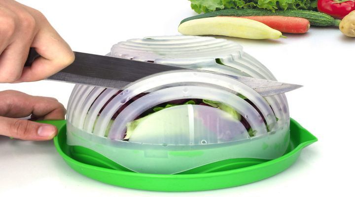 A speedy salad cutter bowl that makes it so easy to cut up your salad greens and veggies, you’ll wonder why you even own a cutting board. It also acts a colander so you can wash your veggies and a serving bowl for when the salad is done.