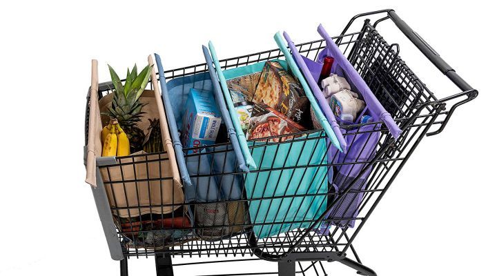 These foldable, storable, Reusable grocery bags that fit snugly into almost any shopping cart and help separate your groceries as you shop so you can get in and out in the most efficient way possible. They’re environmentally friendly and perfect for keeping things organized.