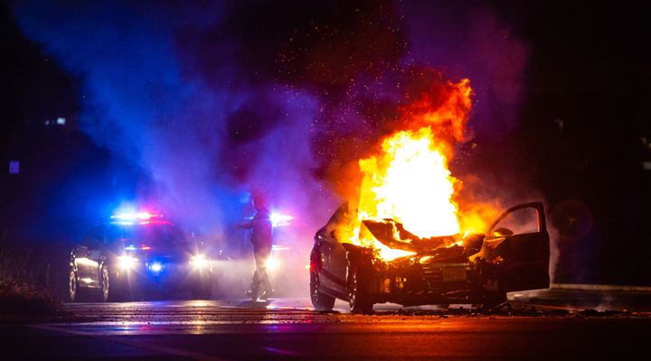 Witnesses in the area ducked and covered, then ran towards the car to see if anyone was hurt. The 39-year-old construction worker emerged from the car, covered in flames and screaming to high heaven. He rolled around on the ground to put out the fire, yelling to the newly arrived firefighters that Zoey was still inside the car.