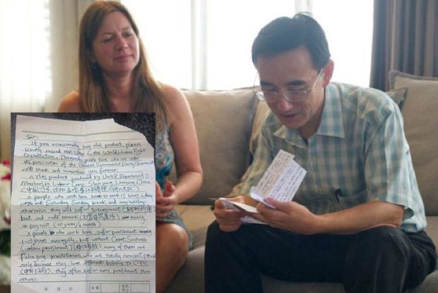 The message upon the paper was hand-written in blue ink. It was broken English, misspelled at times but neatly written. It said: “Sir, If you occasionally buy this product, please kindly send this letter to the World Human Right Organization. Thousands people here who are under the persecution of the Chinese Communist Party Government will thank and remember you forever.”